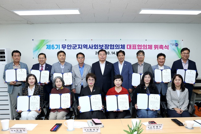 무안군은 지난 14일, 무안군 지역사회보장협의체 회의실에서 지역사회 민관협력체계를 강화하기 위한 제6기 대표협의체 위원 위촉식 및 회의를 개최했다고 밝혔다.