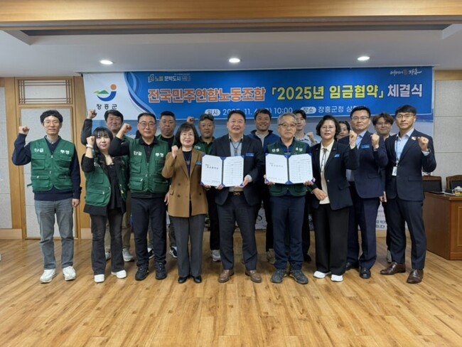 장흥군은 공무직 노조인 전국민주연합노동조합 장흥지부와 2025년 임금협약을 체결했다고 밝혔다.