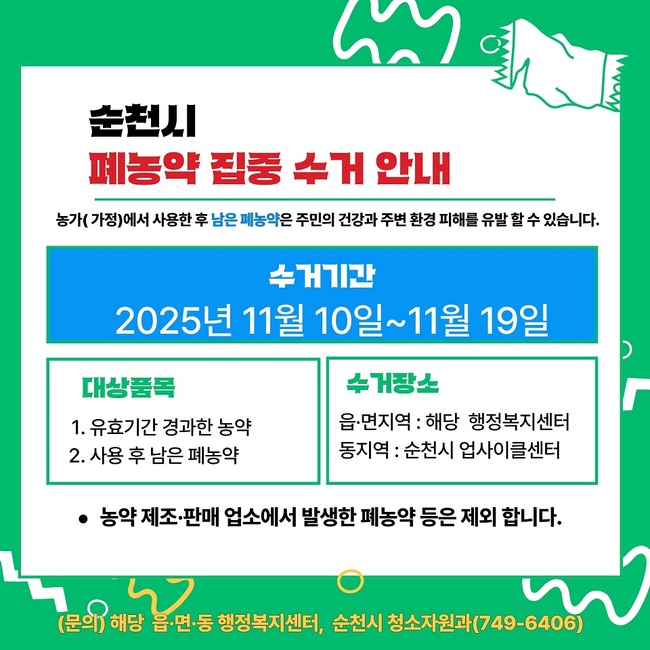 이번 사업은 농가에 방치되기 쉬운 폐농약을 체계적으로 수거・처리해 환경오염을 예방하고 시민 안전을 강화하는 데 목적이 있다.