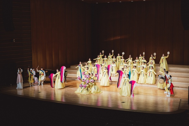 나주배를 상징하는 금빛 한복을 입은 단원들은 국악기와 어우러진 한국적 연출로 무대를 감동으로 물들였다.