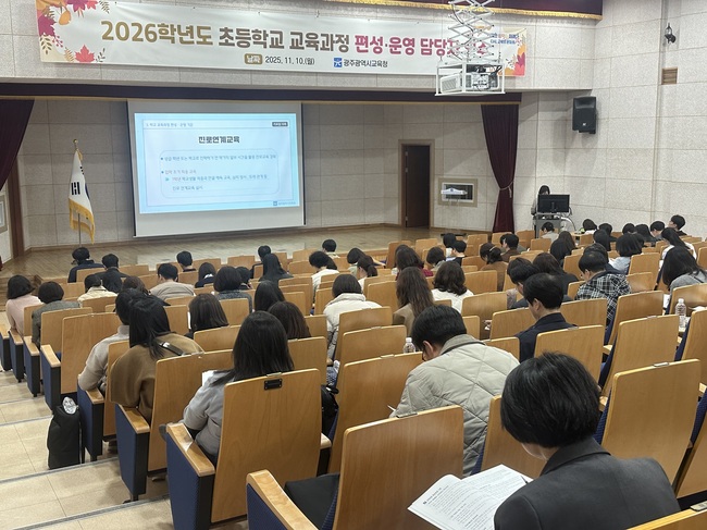 광주시교육청이 지난 10일부터 11일까지 이틀간 광주시교육청교육연수원에서 광주 지역 초등학교 교육과정 담당자 160여 명을 대상으로 ‘2026학년도 초등학교 교육과정 편성·운영 연수’를 실시했다.