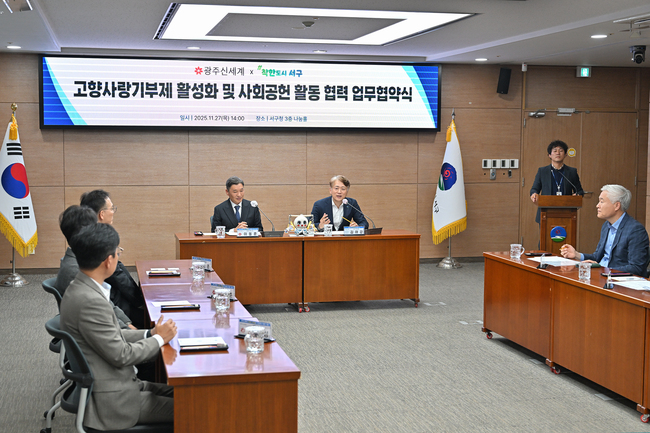 서구는 지난 27일 서구청 나눔홀에서 ㈜광주신세계와 ‘광주 서구 고향사랑기부제 활성화 및 사회공헌 활동을 위한’ 업무협약을 체결했다고 밝혔다.