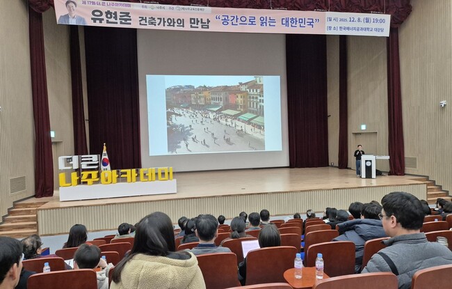 한편 ‘더 큰 나주아카데미’는 인문학, 과학, 문화 등 다양한 분야의 전문가를 초청해 시민들에게 교양과 통찰을 제공하는 평생교육 프로그램으로 시민 누구나 참여할 수 있는 열린 강연으로 운영되고 있다.