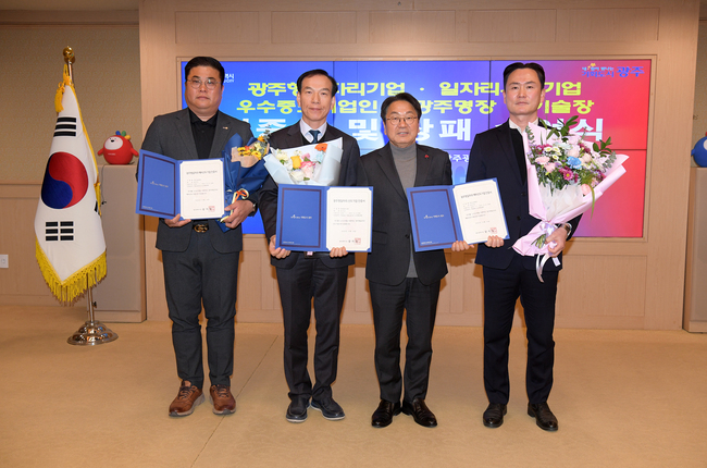 또, 광주시는 기술력이 우수하고 고용창출 등 지역 경제발전에 이바지한 중소기업인 5명(강철원 ㈜유투 대표, 김춘애 ㈜승강 대표, 마상동 ㈜다원물산 대표, 김순곤 ㈜천복금형 대표, 김범안 ㈜195에프앤비 대표)을 우수중소기업인으로 선정했다.