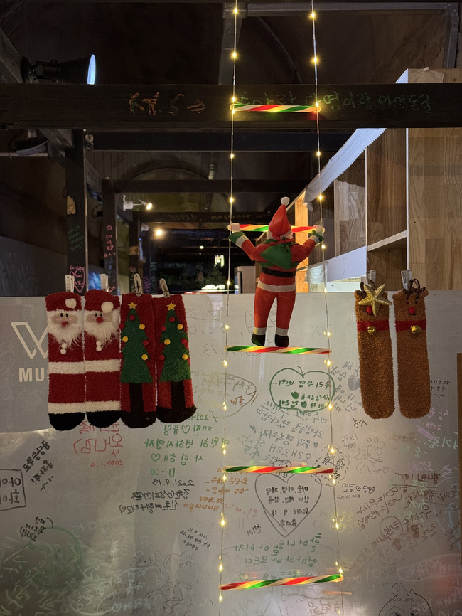 크리스마스를 맞아 동굴 내부는 톰테(Tomte) 인형으로 꾸며져 낭만적인 연말 분위기를 연출하고 있다. 톰테 인형은 스칸디나비아 지역의 크리스마스를 상징하는 장식으로, 뾰족한 니트 모자와 풍성한 흰 수염이 특징이며 공간에 아늑하고 따뜻한 감성을 더한다.
