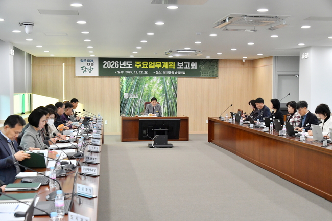 담양군은 지난 22일 군청 송강정실에서 정철원 군수를 비롯한 간부공무원이 참석한 가운데 ‘2026년도 주요업무계획 보고회’를 개최했다고 밝혔다.