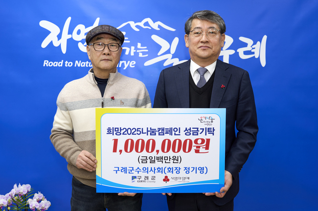 김순호 구례군수는 “연말연시 이웃을 위한 따뜻한 나눔에 동참해주신 구례군수의사회에 깊이 감사드린다”며 “기탁해주신 성금은 도움이 필요한 이웃들에게 소중히 전달해 따뜻한 겨울을 보낼 수 있게 하겠다”고 전했다.