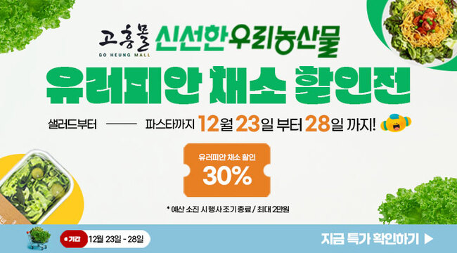 행사 기간 고흥몰에서는 30% 할인 쿠폰을 제공해 유러피안 채소를 보다 합리적인 가격으로 구매할 수 있다.