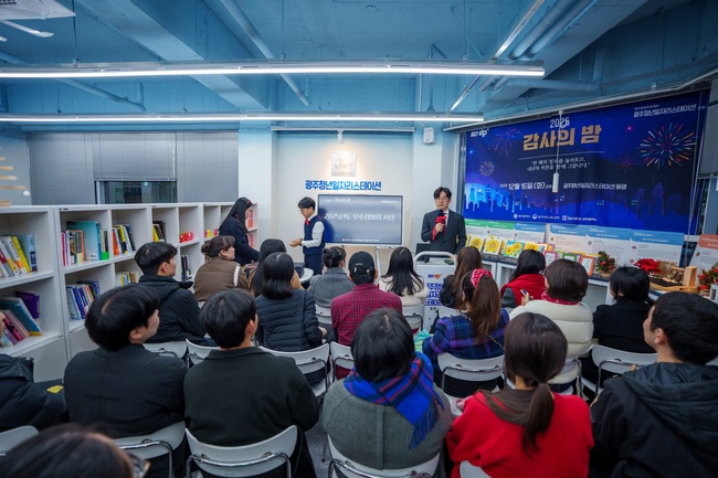 전남대학교 산학협력단 산하 광주청년일자리스테이션 동명이 지난 16일 스테이션 동명에서 연말 성과 공유 행사 ‘2025 감사의 밤’을 열고, 한 해 동안 함께해 온 참여 청년들과 협력 기관 관계자들에게 감사의 뜻을 표했다.