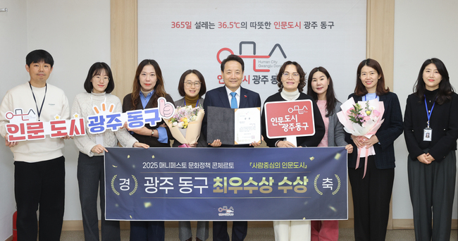 동구는 ‘365일 36.5℃ 인문도시 광주 동구’ 정책으로 2025 매니페스토 문화정책 콘체르토의 ‘문화활동 활성화 분야’ 최우수상을 최근 수상했다고 밝혔다.