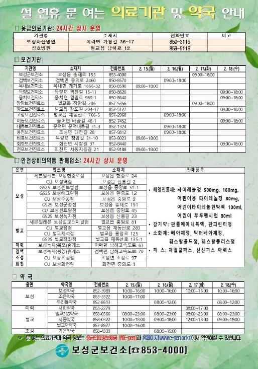 설연휴 운영 의료기관 안내 / 보성군 제공