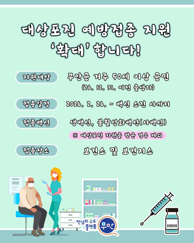 무안군, 50세 이상 대상포진 예방접종 지원 확대